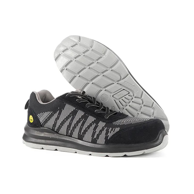 Deportivo de seguridad. • Tejido técnico y refuerzos en piel serraje. • Puntera y plantilla no metálica. • Suela PU/PU. • ESD. EN ISO 20345:2022 S3S CI FO SR SC.