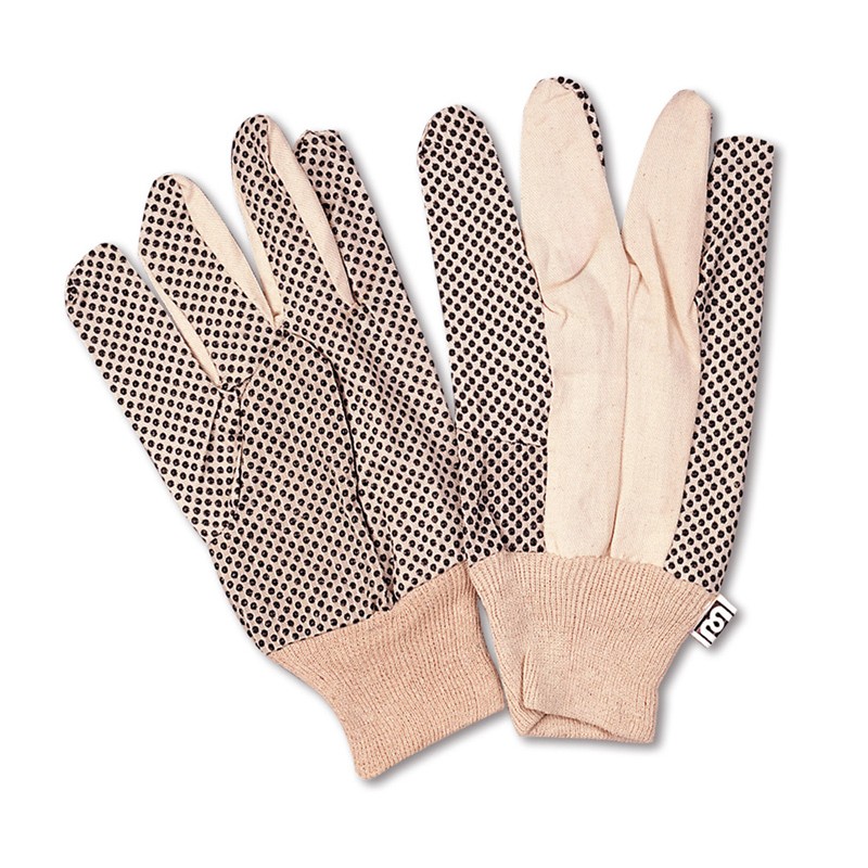 Guante de lona de algodón, con puntos de PVC en palma y dedos.