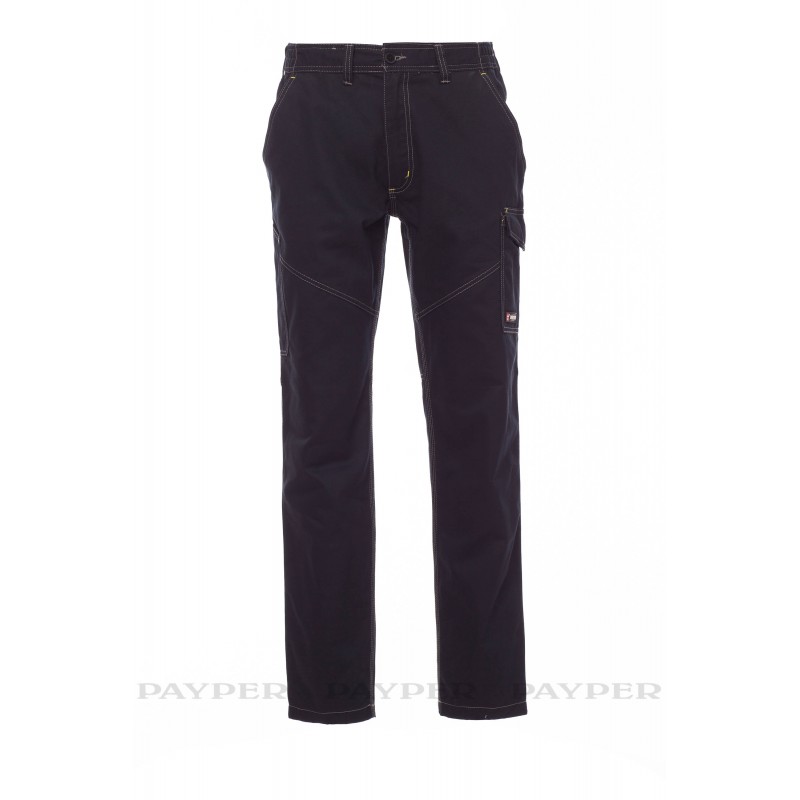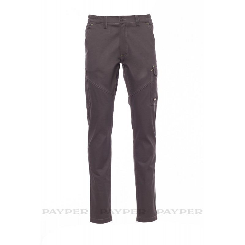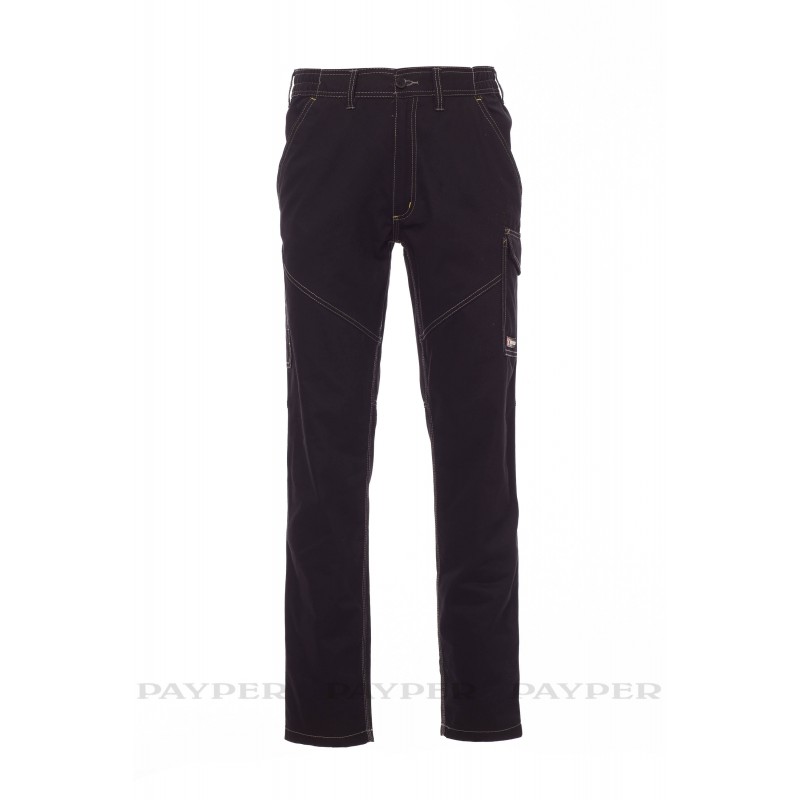 Pantalón unisex, multiestación, con elásticos laterales y trabillas en la cintura, cierre con cremallera y botón de plástico, dos bolsillos delanteros de corte clásico, un bolsillo lateral con LOCK SYSTEM, un soporte para metro; dos bolsillos traseros, uno con tapeta y velcro y otro abierto, aplicaciones y pespuntes en contraste, bandas reflectantes en el bolsillo trasero, costura triple.