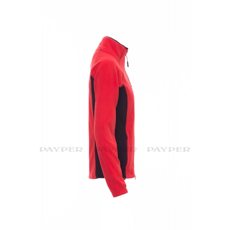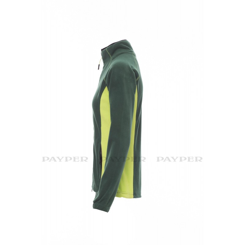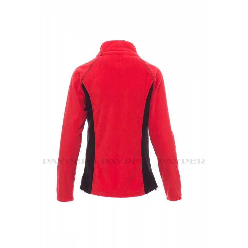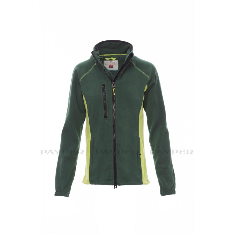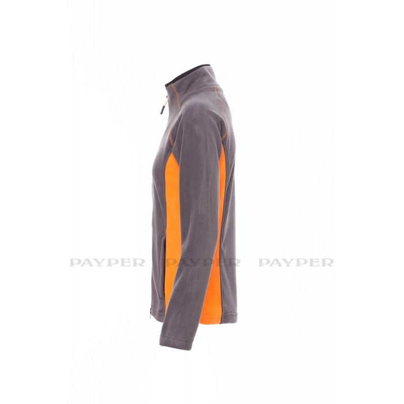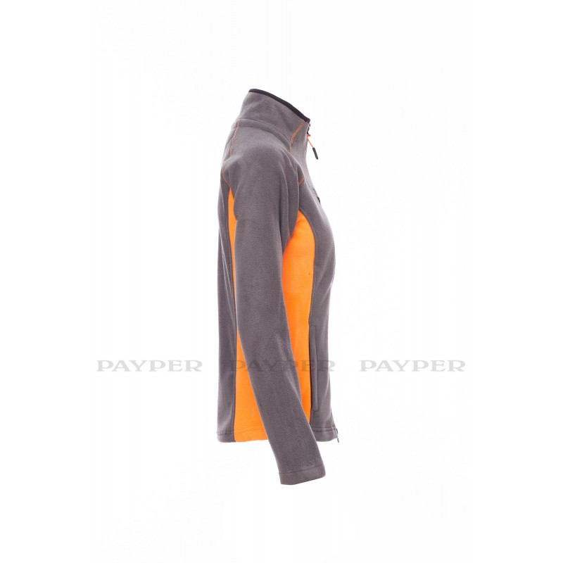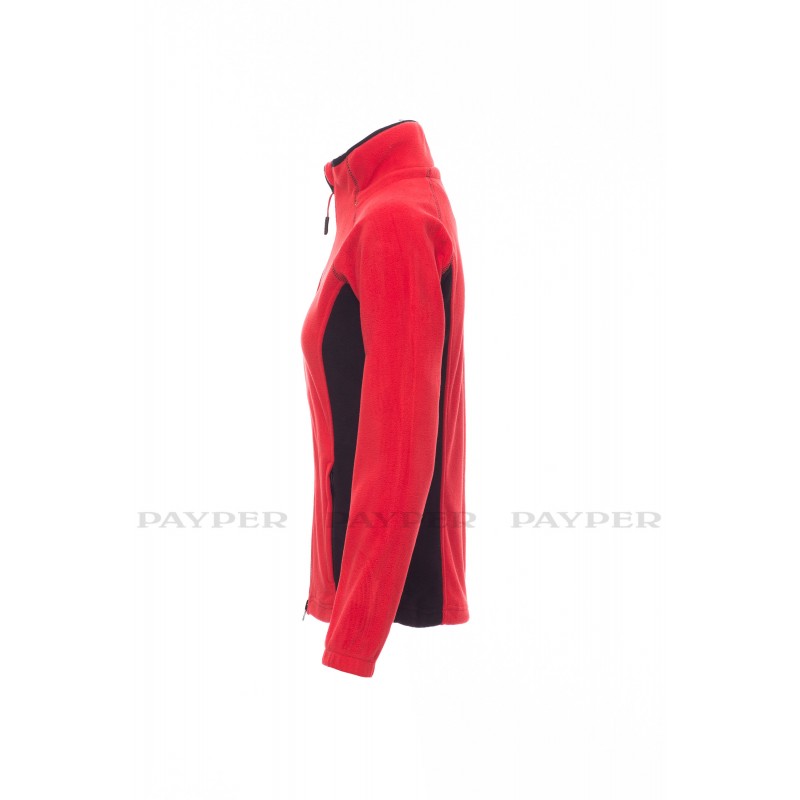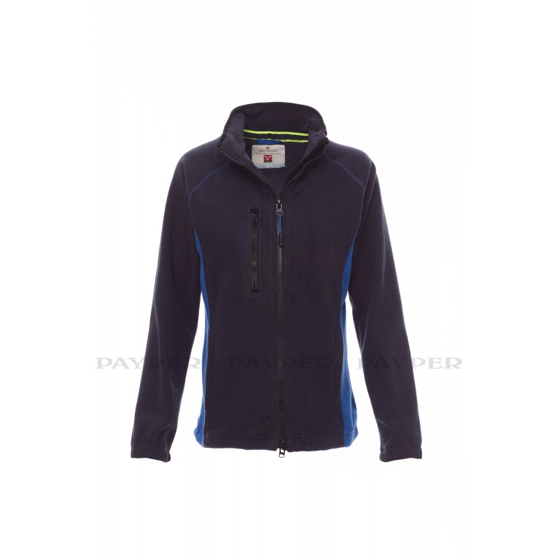 Forro polar ceñido en dos tonalidades para mujer, con cremallera de 8 mm de plástico negra, mangas ranglán, cordón ajustable en la cintura, puños elásticos, dos bolsillos con cremallera oculta, un bolsillo delantero con cremallera, cuello con cinta de refuerzo de contraste, costuras reforzadas.