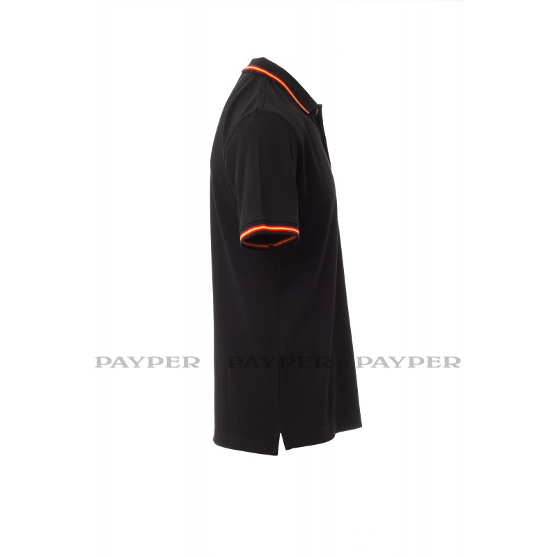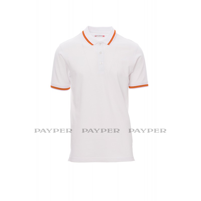 Polo unisex de manga corta con 3 botones a juego, cuello y puños con un fino perfil tricolor en contraste, cuello y puños acanalados, aberturas laterales con costura de refuerzo, costuras de cuello cubierto, cinta de refuerzo lateral, costuras elásticas, refuerzo con forma contorneada.