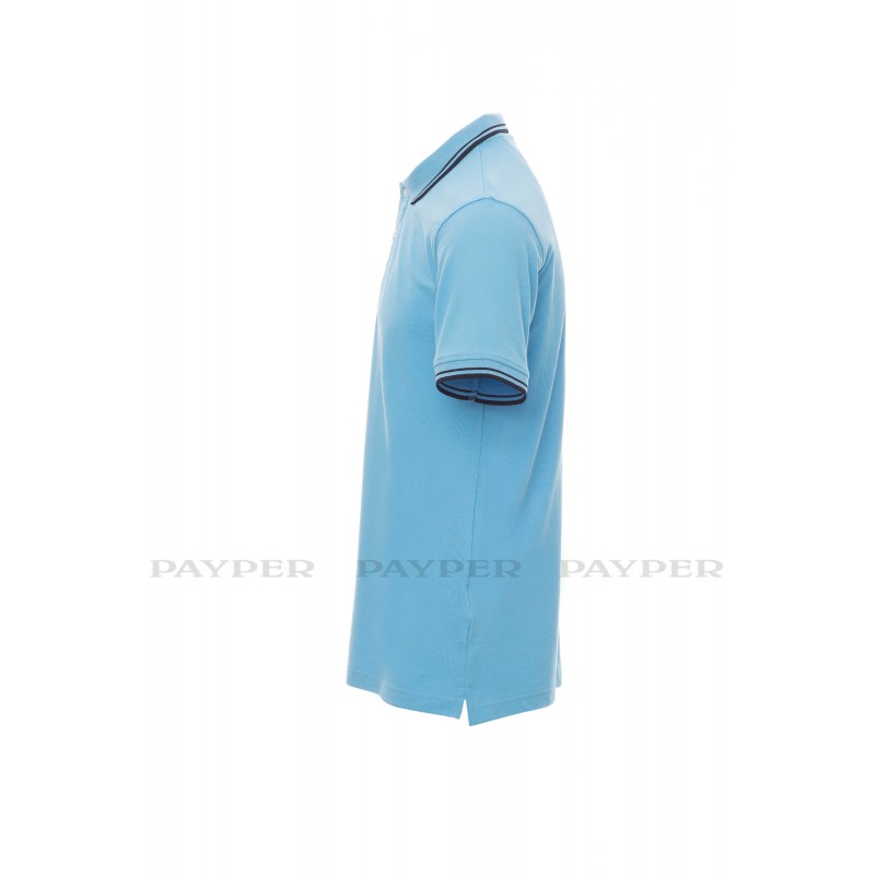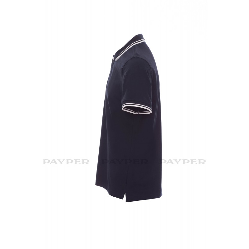 Camiseta polo de manga corta para hombre, con 3 botones blancos, fino ribete de contraste en cuello y mangas, cuello y extremo de las mangas elásticos, ventilaciones laterales con costuras reforzadas, pespunte oculto en cuello, cinta de refuerzo lateral, costuras elásticas, cinta en la parte interior del cuello.